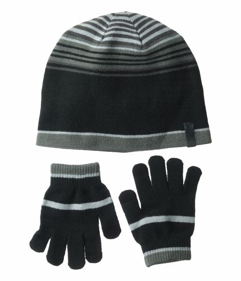 Wholesale 100% Acrylic Winter Unisex Warm Striped Beanie Knitted Hat Glove Sets