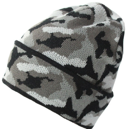 BSCI Audit 100% Acrylic Knitted Hat Thickened Fleece Lining Army Camouflage