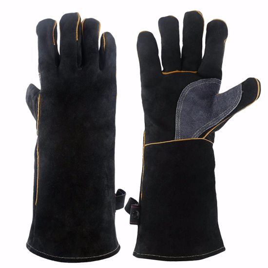 BSCI Audit 100% Split Cow Leather Breathable Extreme Heat Resistant Gloves Leather With Kevlar Stitching