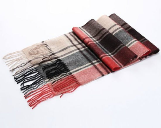 Sedex Audit Women's Winter Warm Woven Chunky Custom Plaid Elegant Stretch Merino Wool Scarf
